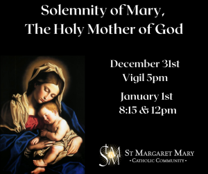 Solemnity of the Mary, Mother of God – December 31 @ 5pm & Jan 1 @ 8:15am & 12pm