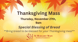 Thanksgiving Mass – Nov 27 @ 9am w/ special Bread Blessing